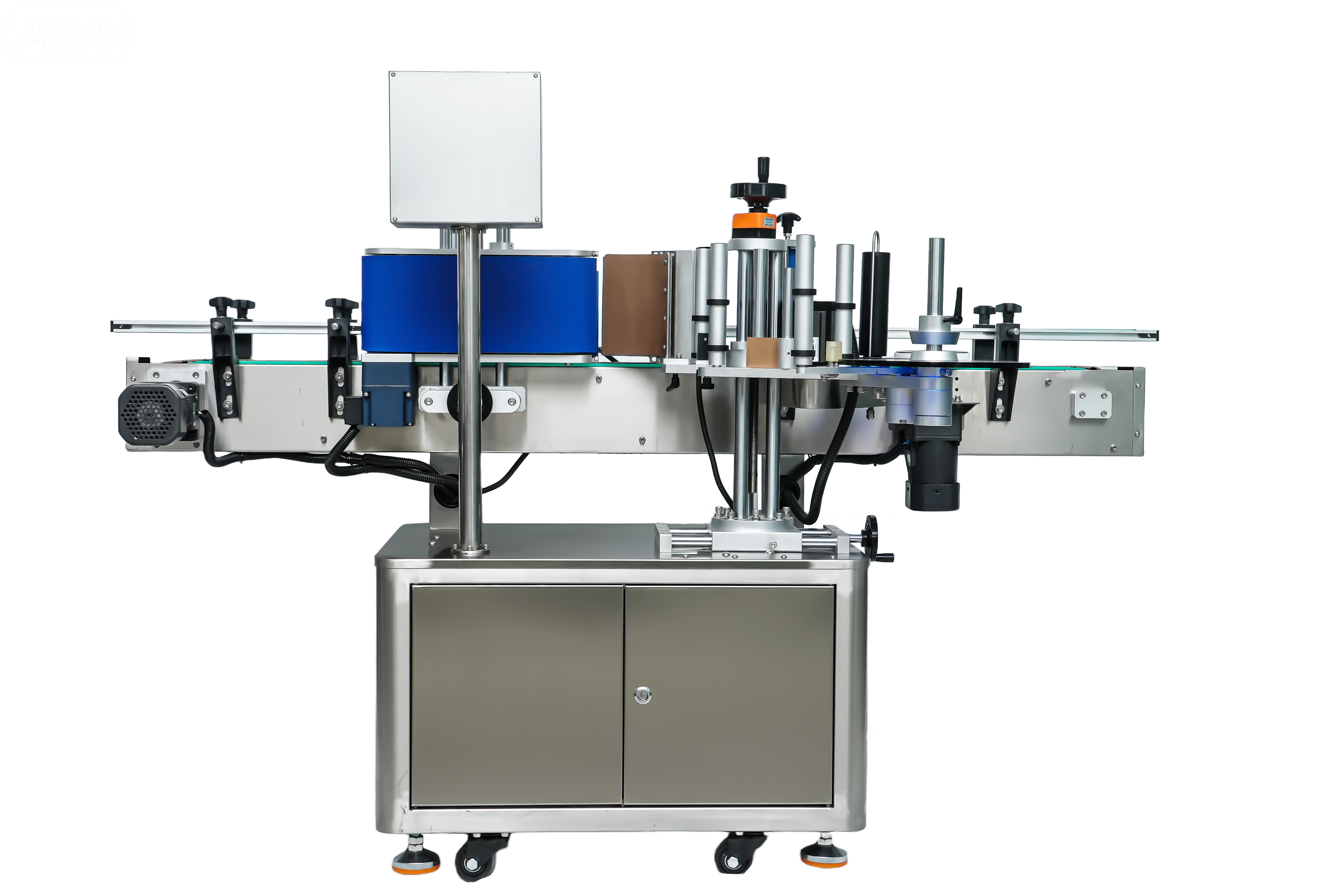 ◆核心工作原理:產(chǎn)品通過輸送帶平穩(wěn)傳送至特定的貼標(biāo)區(qū)域,當(dāng)傳感器敏銳檢測(cè)到產(chǎn)品到達(dá)指定位置后,貼標(biāo)機(jī)構(gòu)即刻啟動(dòng)。搓滾裝置以獨(dú)特的滾動(dòng)方式運(yùn)作,巧妙地將標(biāo)簽從標(biāo)卷上精準(zhǔn)剝離,然后借助摩擦力,將標(biāo)簽恰到好處地搓滾貼附在產(chǎn)品表面。在整個(gè)貼標(biāo)過程中,精密的控制系統(tǒng)時(shí)刻保持對(duì)產(chǎn)品位置以及標(biāo)簽輸送情況的實(shí)時(shí)監(jiān)測(cè),確保標(biāo)簽?zāi)軌驕?zhǔn)確無誤地貼附在產(chǎn)品的預(yù)定位置,保證貼標(biāo)質(zhì)量的準(zhǔn)確性與穩(wěn)定性。